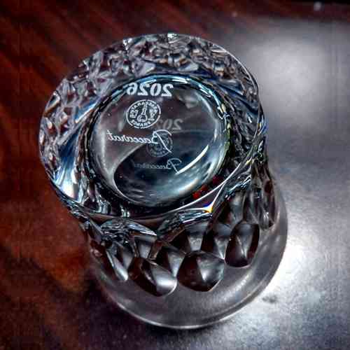 グラス全体に幾重にも施されたピラミッド模様が最大の特徴で、複雑に光を反射させ、ピュアなクリスタルの神殿へ貴方をいざないます。