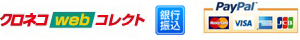 お支払いは、銀行振込・クロネコWEBコレクト(クレジットカード)・ペイパル支払い〈クレジットカード)がご利用いただけます。
