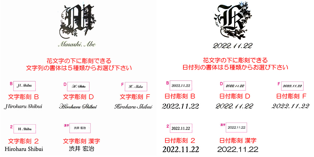 ●花文字下に、英字14字(追加名入れの為、追加料金加算)