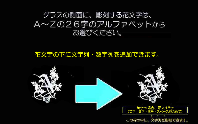 花文字彫刻 グラスは <リッチ通販>のオリジナル商品