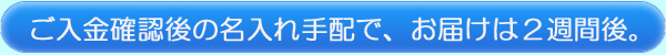 在庫状況などによりお受けできない場合もございますので、あらかじめ、ご了承ください。また、名入れグラスの場合、製作からお届けまで、2週間かかりますので、お届け日のご希望は、少なくとも、2週間以上日数を空けていただけた場合のみ、お受け出来ることもございます。