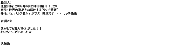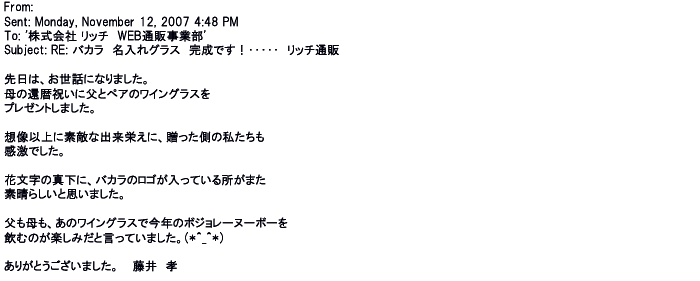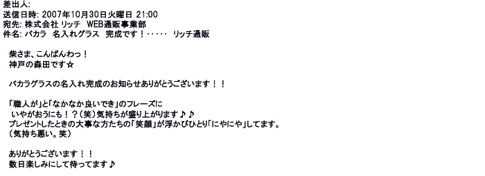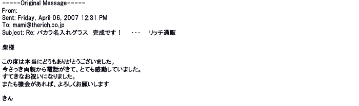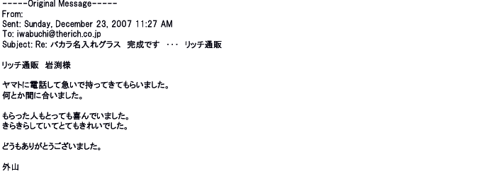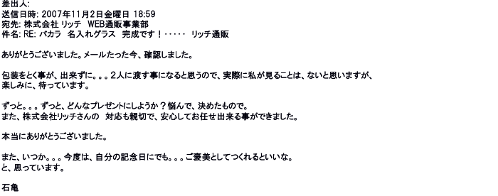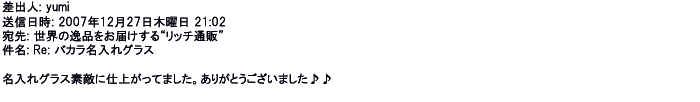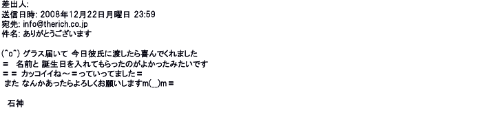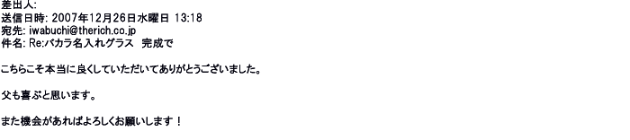 2007年12月27日名入れグラス素敵に仕上がってました。ありがとうございました♪♪