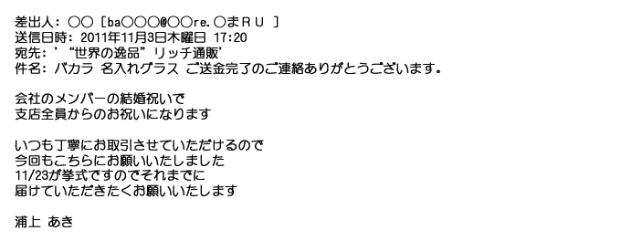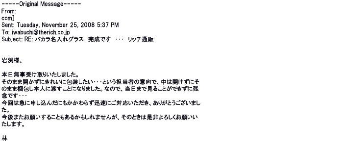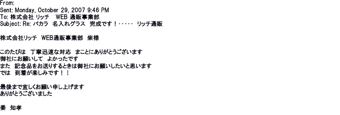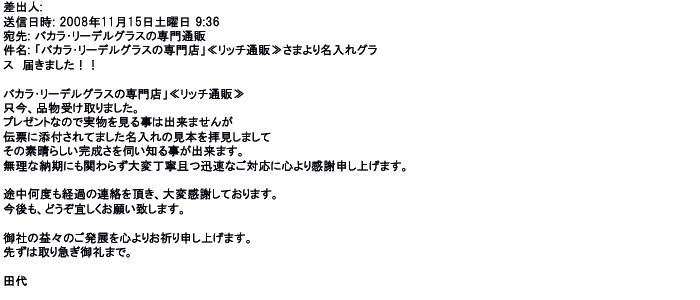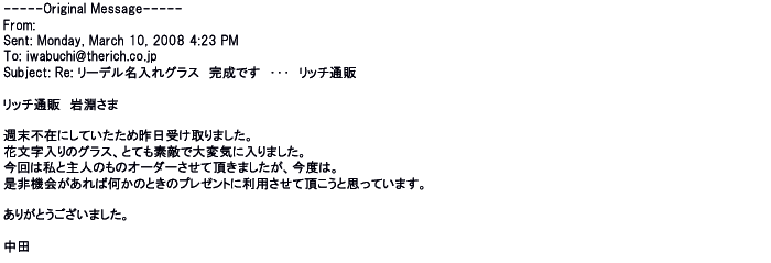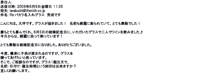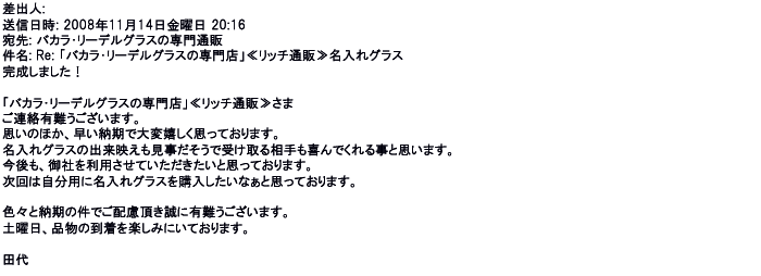 2008年11月14日名入れグラスの出来映えも見事だそうで受け取る相手も喜んで