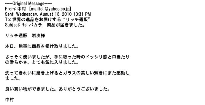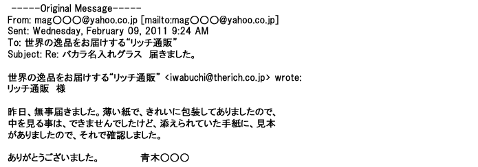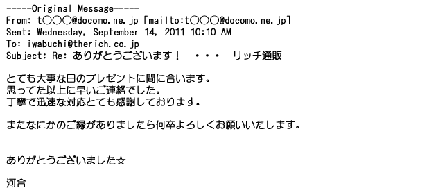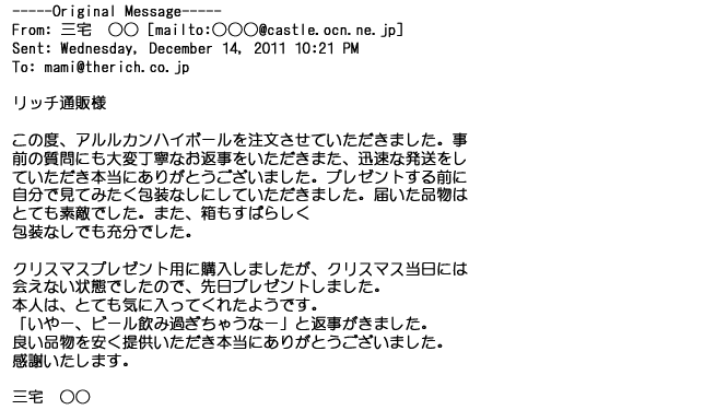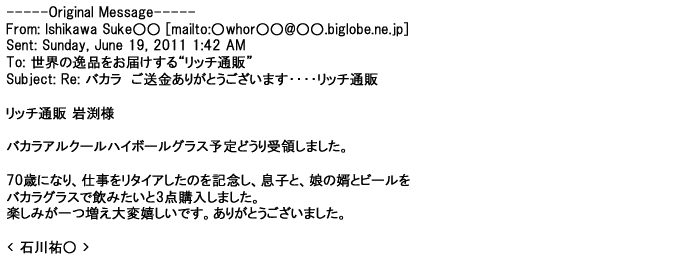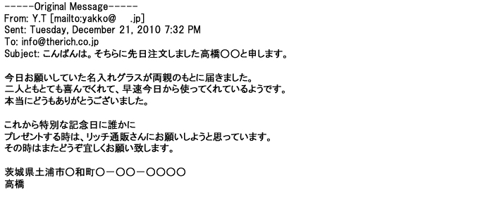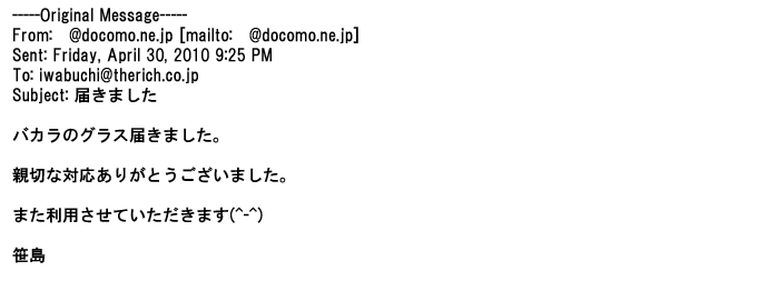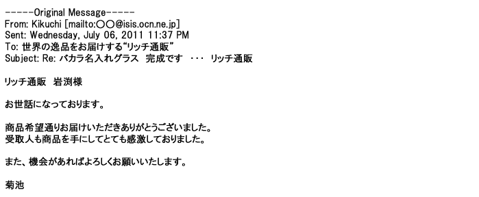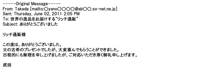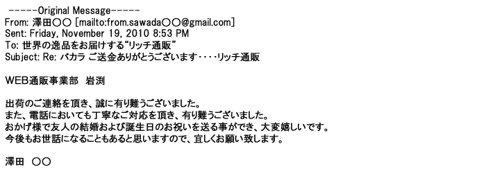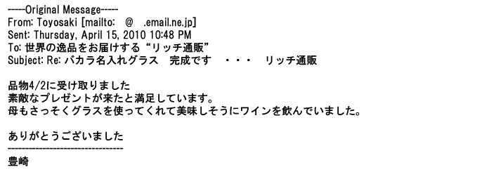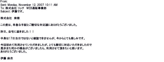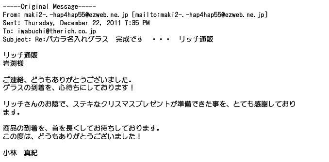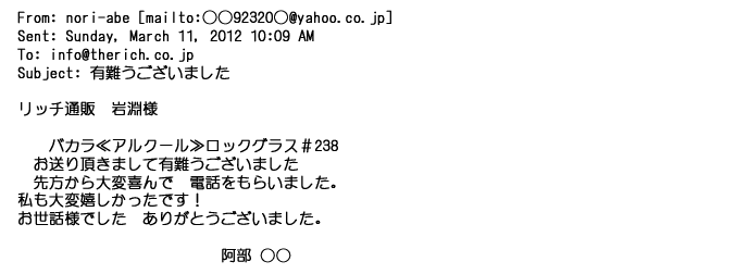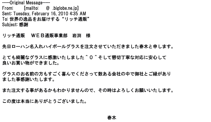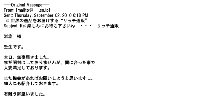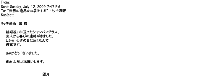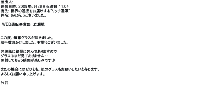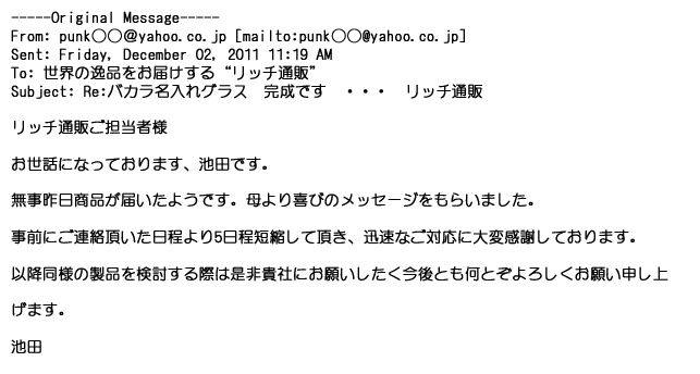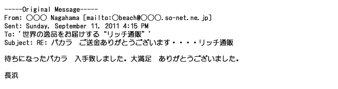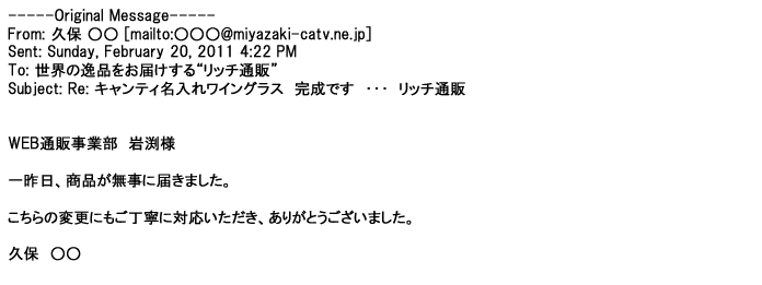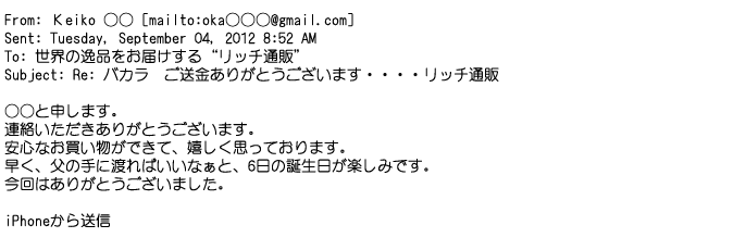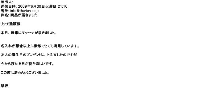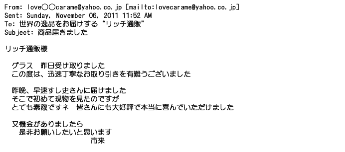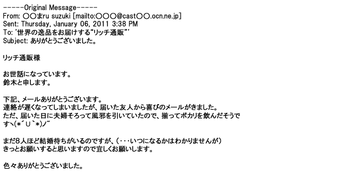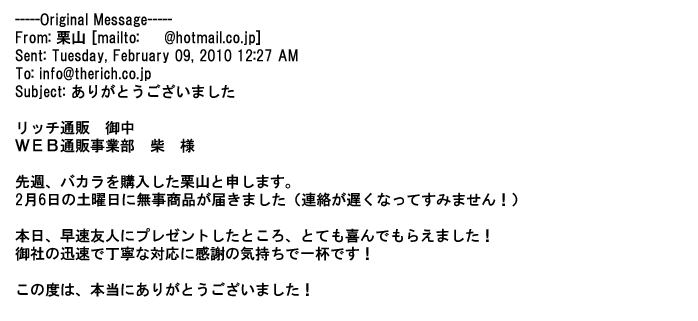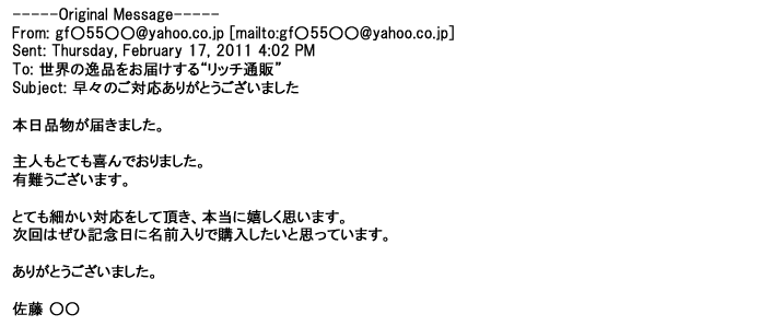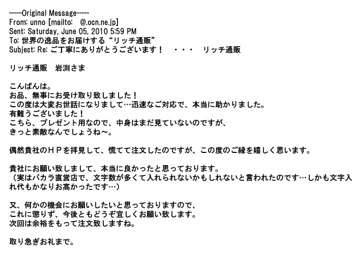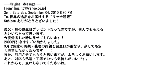ご利用いただきましたお客様からリッチ通販へ寄せられたメールの一部を掲載させて頂きました。