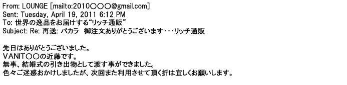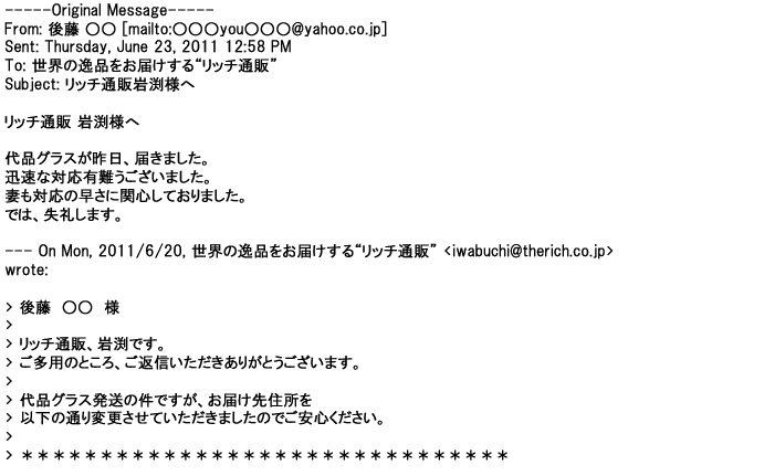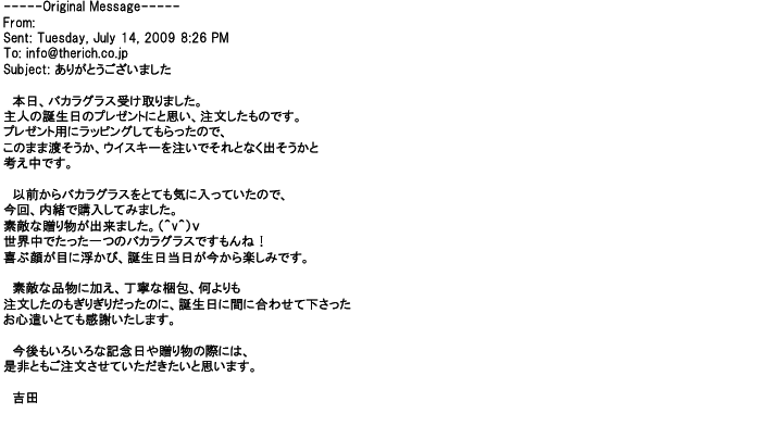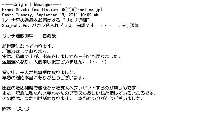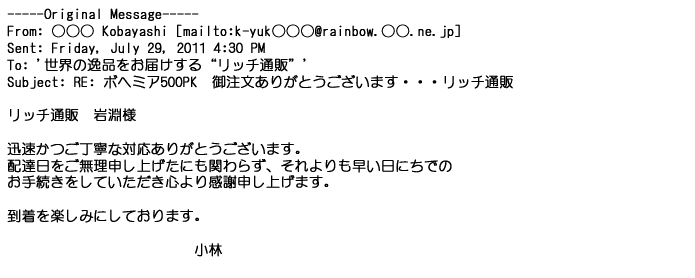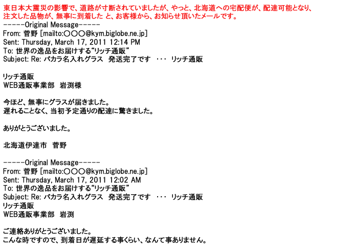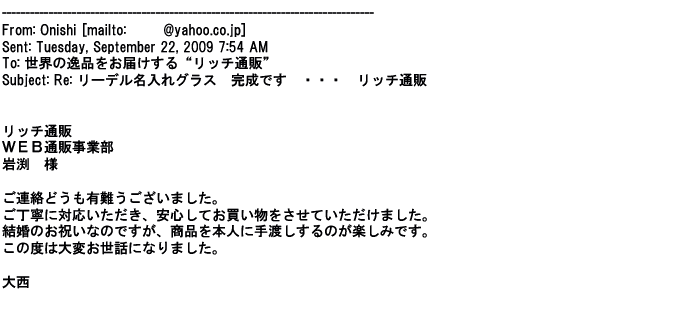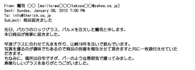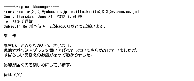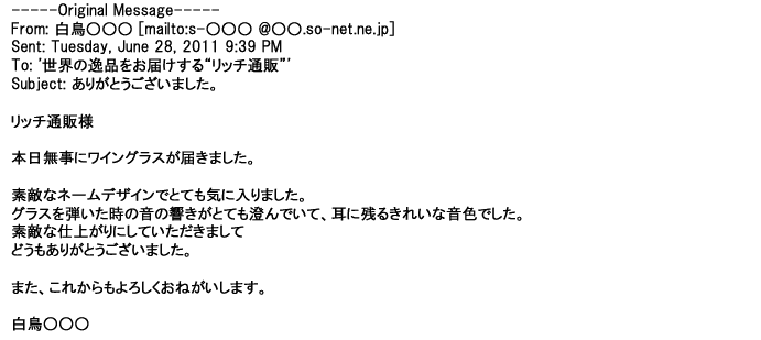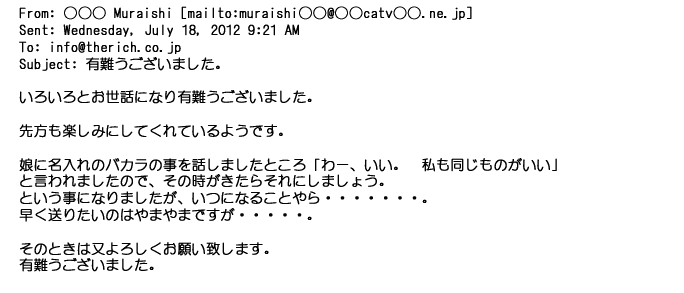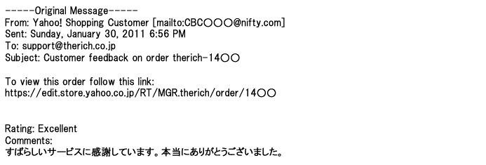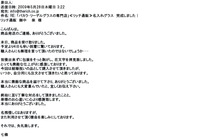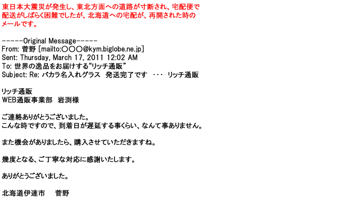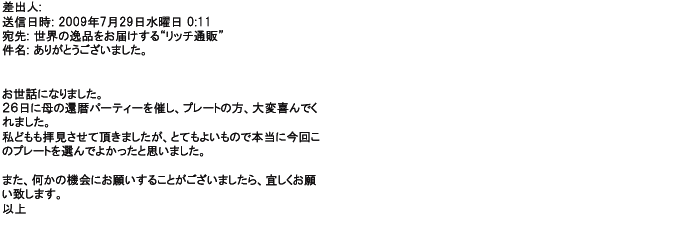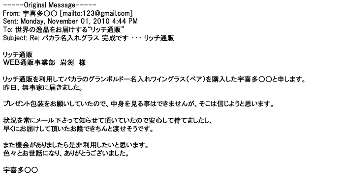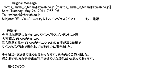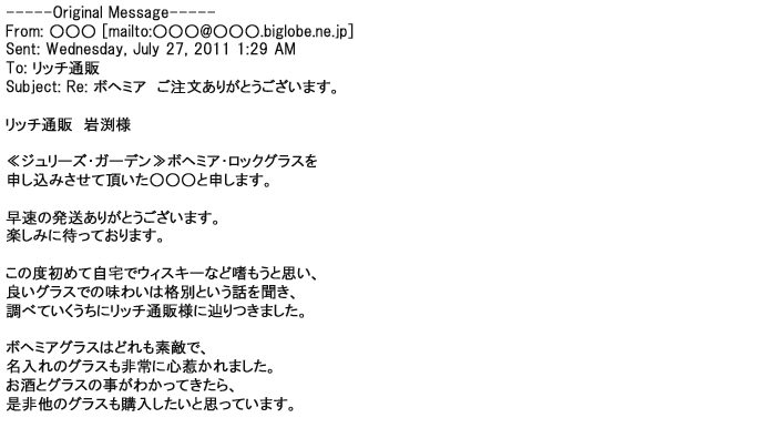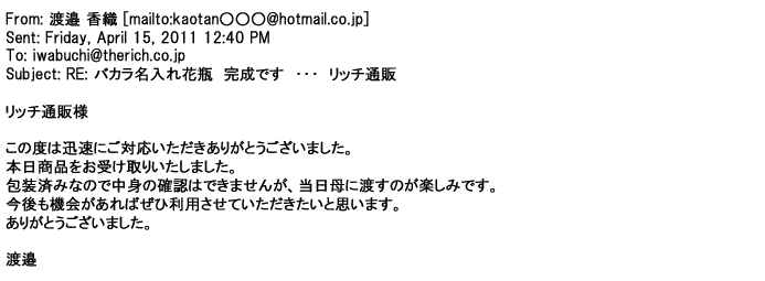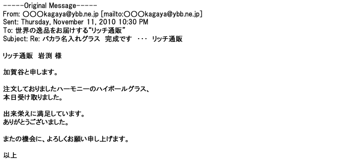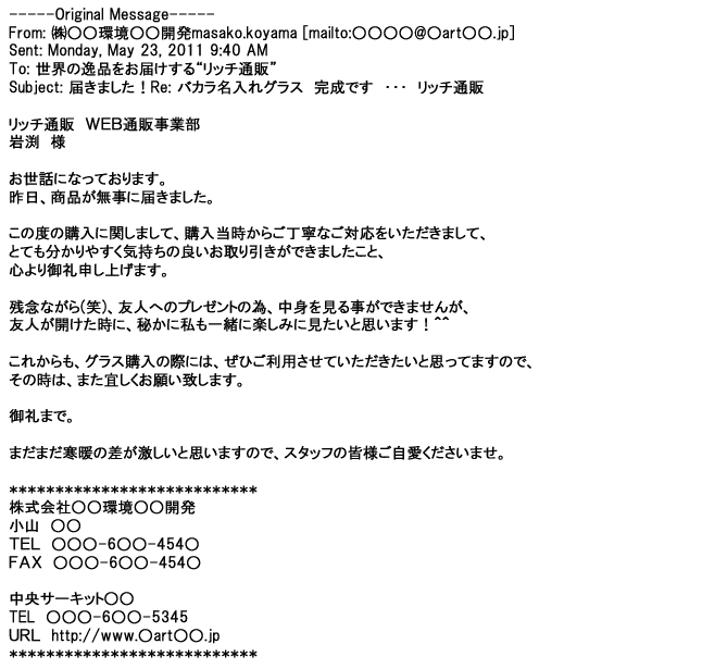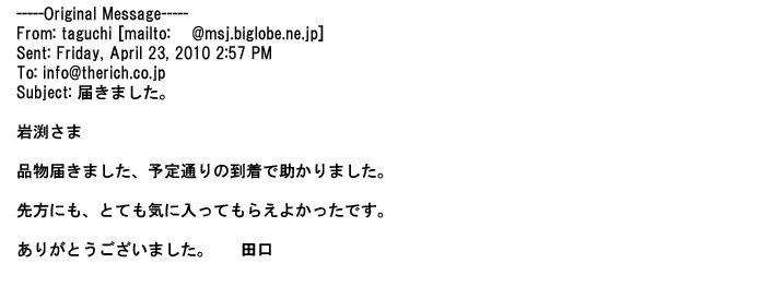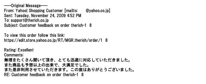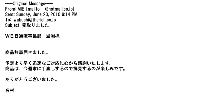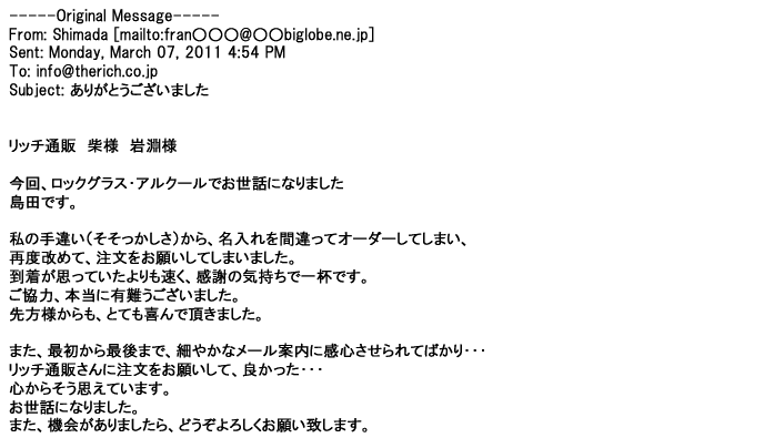 ご利用いただきましたお客様からリッチ通販へ寄せられたメールの一部を掲載させて頂きました。