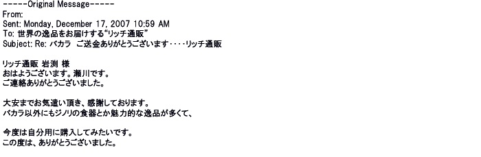 2007年12月26日こちらこそ本当に良くしていただいてありがとうございました。