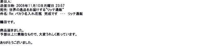2008年11月10日名入れ花瓶完成です・・予想以上に素敵なもので、大変うれしく思っています。