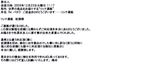 2008年12月23日個々に対応頂ける御社に柔軟さに、是非またの機会に