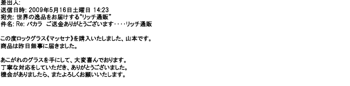 2009年5月16日あこがれのグラスを手にして、大変喜んでおります。丁寧な対応・・・