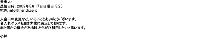 2009年5月18日無理なお願いにも関わらず、早急に対応いただき・・・・・