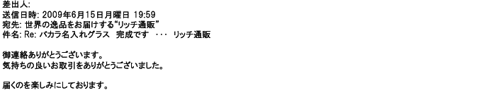 2009年5月2日素晴らしい出来のグラスが届きました。