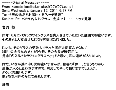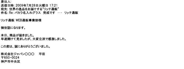 2008年6月13日数あるバカラの名入れサービスを行っているショップさんのうち、