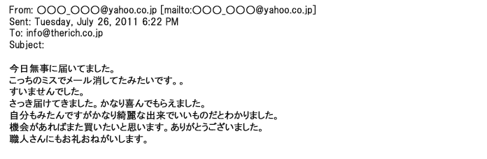 2012年3月11日先方から大変喜んで 電話をもらいました。私も大変嬉しかったです!