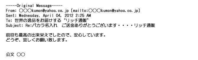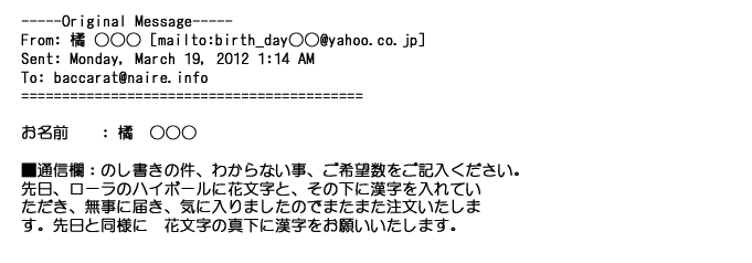 2012年4月5日貴方からいただくご丁寧なメールの内容からその出来栄えを・・また何かの折にお願いする