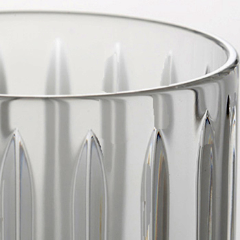 このグラスは、クリスタル・ガラスの特徴を余すことなく表現しており、まずは、その重量感で、グラスを持つとその重量を手でずっしりを感じことができ、そして、グラス側面と底部の2カ所には、6角のフラットカットが、合計12面施され、その角面に光が入り込むと、まるで光の芸術のような輝き放ちます。あのアルクールを超えたグラス