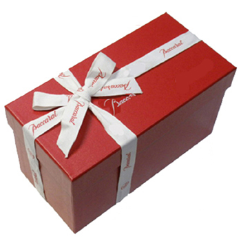 | バカラのリボン掛け(300円)をバカラ箱に直接、リボンがけした例です。ギフト包装手続きで、ご注文をお受けしております。 |