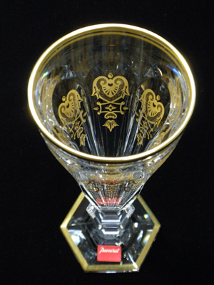 反射角にはいると、グラスが光り輝きます。まさに光とカット面がおりなす、≪光≫のページェントそして、24金で、装飾された≪エンパイア≫の側面 まさに≪皇帝≫を想起させる、豪華なデザインです。バカラの代表作として、No.1の豪華さを感じるグラスです。