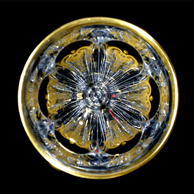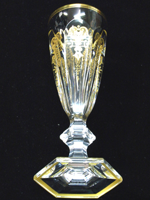 グラス基部は、このように、正六角形にカットされ、規則正しく、そして、六角形の側面には、24金がプレーテッドされています。24金使用が、この≪エンパイア≫の特徴です。