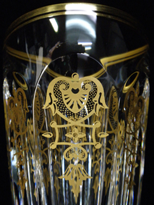 バカラを代表するアルクールに、輝くを抑えた24金で、重厚なアンピール模様をグラス全体に施し、