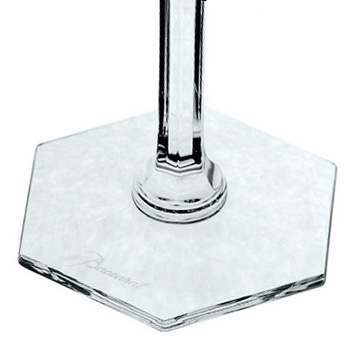 バカラシリーズのなかで、バカラの代名詞といわれる「アルクール」が男性的なデザインとすると、その双璧として、この「アルクール・イブ」が生まれました。女性らしいエレガントなデザインを基調とし、側面全体、そしてステムから基部にかけての6角面のフラットカットによって、グラスがひかり輝きます。