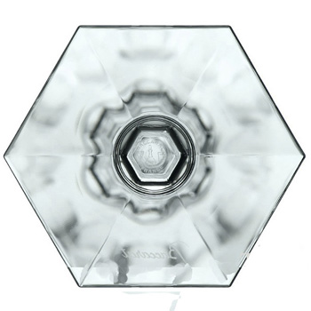 グラスの尖塔と6角ステムが一点にまとめられ、その流れがグラス基部までに一直線に続き、6角形の底部が、それらのすべての流れを受け止めています。