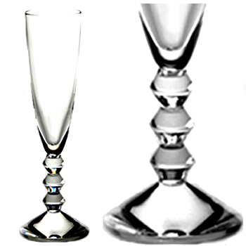 ベガ シャンパングラスを真横からみると、上記のように見えます。≪光の反射≫を計算してデザインされ、光がステムの反射角にはいると、グラスが光り輝きます。まさに光とカット面がおりなす、≪光≫のページェント が魅惑的ですね。バカラの代表作として、まさにNo.1の気品を感じるグラスです。