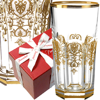 24金で手間と時間と技術を結集した文字通りバカラの技術の粋を集めて作られる美術品の名に値するグラスですバカラを代表するアルクールに輝きを抑えた24金で、重厚なアンピール模様をグラス全体に施し、贅の限りをつくした文字通り≪エンペラー≫としてバカラの技術の粋を集めたハイボールの最高峰です。