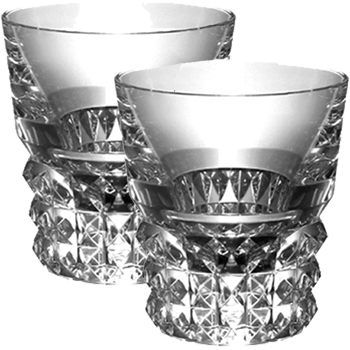 このグラスは、クリスタル・ガラスの特徴を余すことなく表現しており、まずは、その重量感で、グラスを持つとその重量を手でずっしりを感じことができ、そして、グラス側面と底部の2カ所には、ピラミッド模様が、ところ狭しと施され、その角面に光が入り込むと、まるで、光の芸術のような輝き放ちます。あのアルクールを超えたロックグラスですね