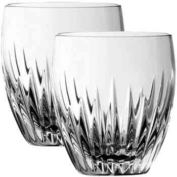 マッセナ・ロックグラスを斜め上から見て グラス側面に深く縦に刻まれたカットが光の芸術を・・・