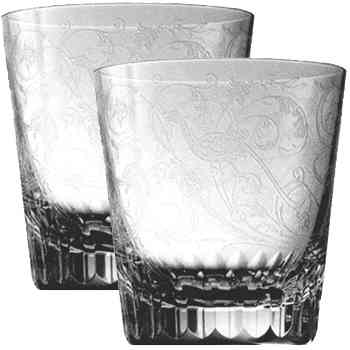 パルメとは、パリ郊外にある大統領のハンティングロッジで使われる為に1939年に作られたパターンで、楽園に住む想像上の鳥をモチーフにしたエッチングによって飾られています。グラスの底部<側面>に細かなカットが刻まれており、そのカット部分をグラスの上部から見ると、周りから入る光が、そのカット部分に反射し、光の世界に踏み込んだような錯覚を与えてくれるのが、このパルメです。