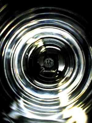 グラスの真上から、グラス底部をみると、グラス側面の輝きが、グラスの内面に、光の年輪を刻み、まるで、バカラの歴史が刻まれた年輪のように見えますね。