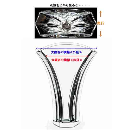 花瓶の側面は、上記のように銀杏の葉の形状に似ており、この面に≪名入れ≫することも可能です。