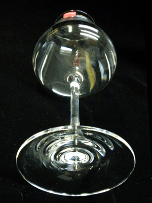 グラスを下から見ると、グラスの曲線が、ボウルの底部まで流れるように伸びています。とてもエレガントな弧を描き、グラスの特徴を表しています。