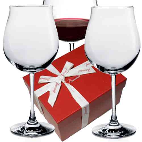 デキュスタシオン 専用の バカラ赤箱ペア入れです。ワインを楽しむために、たっぷりとワイン楽しめるよう、容量の大きいグラスのため、とても大きなペア箱となります
