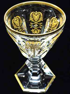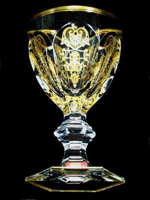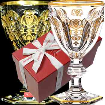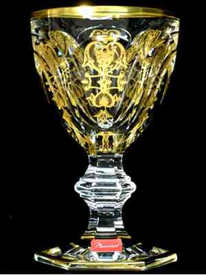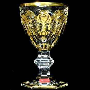 バカラの代名詞 『アルクール』 に重厚感溢れるアンピール模様の金彩でグラス全体に装飾した文字通りバカラ最高峰のグラスで、ナポレオン皇帝をイメージしてこの名前が付けられました。1917年よりローマ教皇の別荘で使用されています