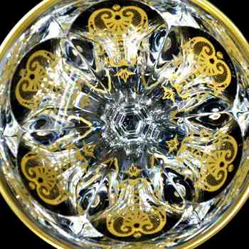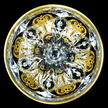 グラスを真上から、見ると・・・・グラスの側面の大胆にカットとが、グラスの奥行きをつくり、側面に施された24金の装飾とのコラボレーションが、この光の芸術を生み出しています。