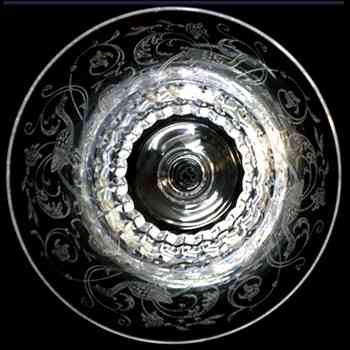 パルメを真横から見ると、ちょうど、グラス側面に施された縦じまカットが波をうったように見えます。このカットは、上か見ると下の写真用に見え、光の反射をうまく利用し、グラス側面の模様と絶妙なコンビネーションを生み出しています。