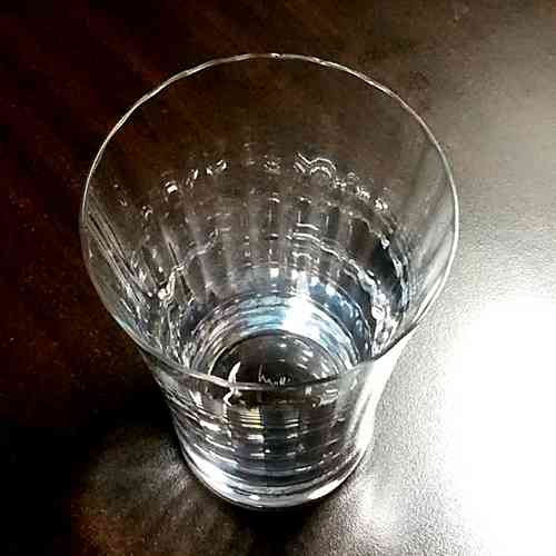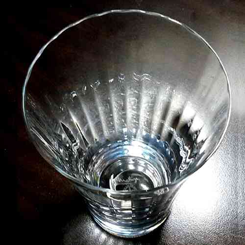 斜めから見るとグラス側面の表面に加工が施されているのがよくわかりますね。このウェーブが光の反射を生み、グラスを輝かせています。