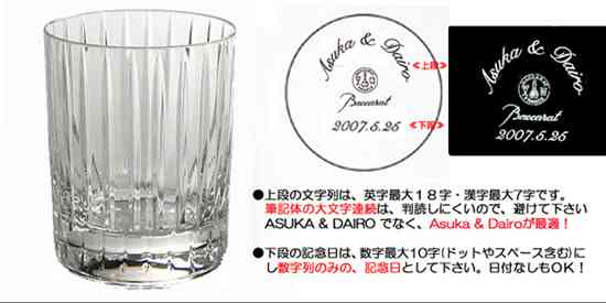 あなたの名前や記念日を名入れしてオリジナルのバカラのグラスで差をつけませんか!!