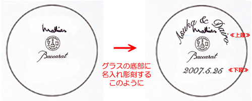 ご注意)英字大文字の連続を筆記体で名入れすると判読できない文字列となりますので、