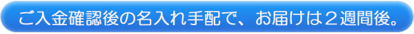 在庫状況などによりお受けできない場合もございますので、あらかじめ、ご了承ください。また、名入れグラスの場合、製作からお届けまで、2週間かかりますので、お届け日のご希望は、少なくとも、2週間以上日数を空けていただけた場合のみ、お受け出来ることもございます。