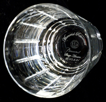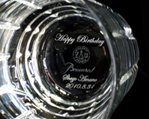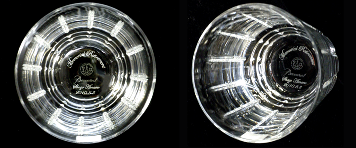 グラスの底面・・・底面の絶妙の位置に名入れ加工致します。