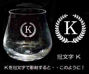アルルカン ロックグラスの底部にメッセージを彫刻した例