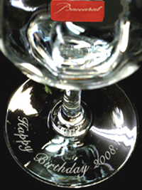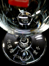 | 漢字パターンで、グラス基部にメッセージと記念日そしてお名前を名入れした特殊例 |