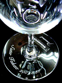 | Eパターンで、グラス基部にお名前と記念日を名入れした実例 |